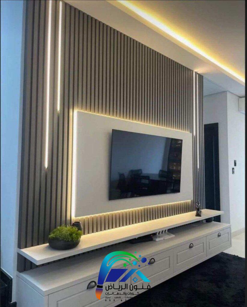 - تصميم ديكور شاشة تلفزيون بالرياض بأسلوب مودرن.